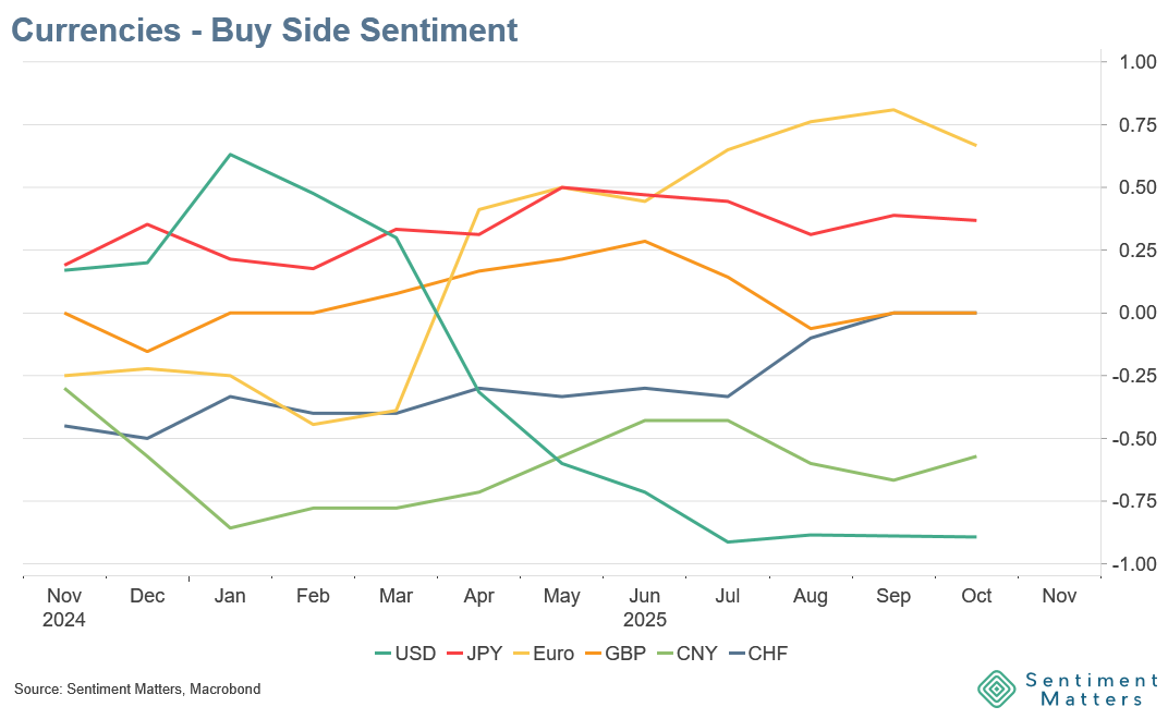 Euro: remains most popular currency for the fourth straight month, despite mild downgrades. CFTC positioning confirms this bullishness.