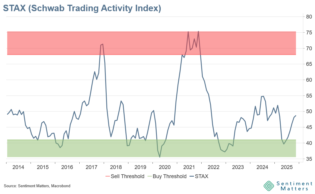 The Schwab Trading Activity Index (STAX) paints a less bullish picture of retail sentiment than AAII.
