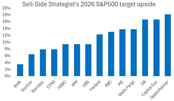 Sell-side strategists are releasing their 2026 targets, and the good news is that they’re reassuringly boring. Despite a multi-year bull market, there’s little sign of exuberance in the forecasts.